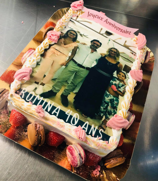 De plus, nous avons la possibilité de personnaliser votre gâteau avec une photo de votre choix, incluse dans le prix à partir de gâteaux pour 8 personnes.